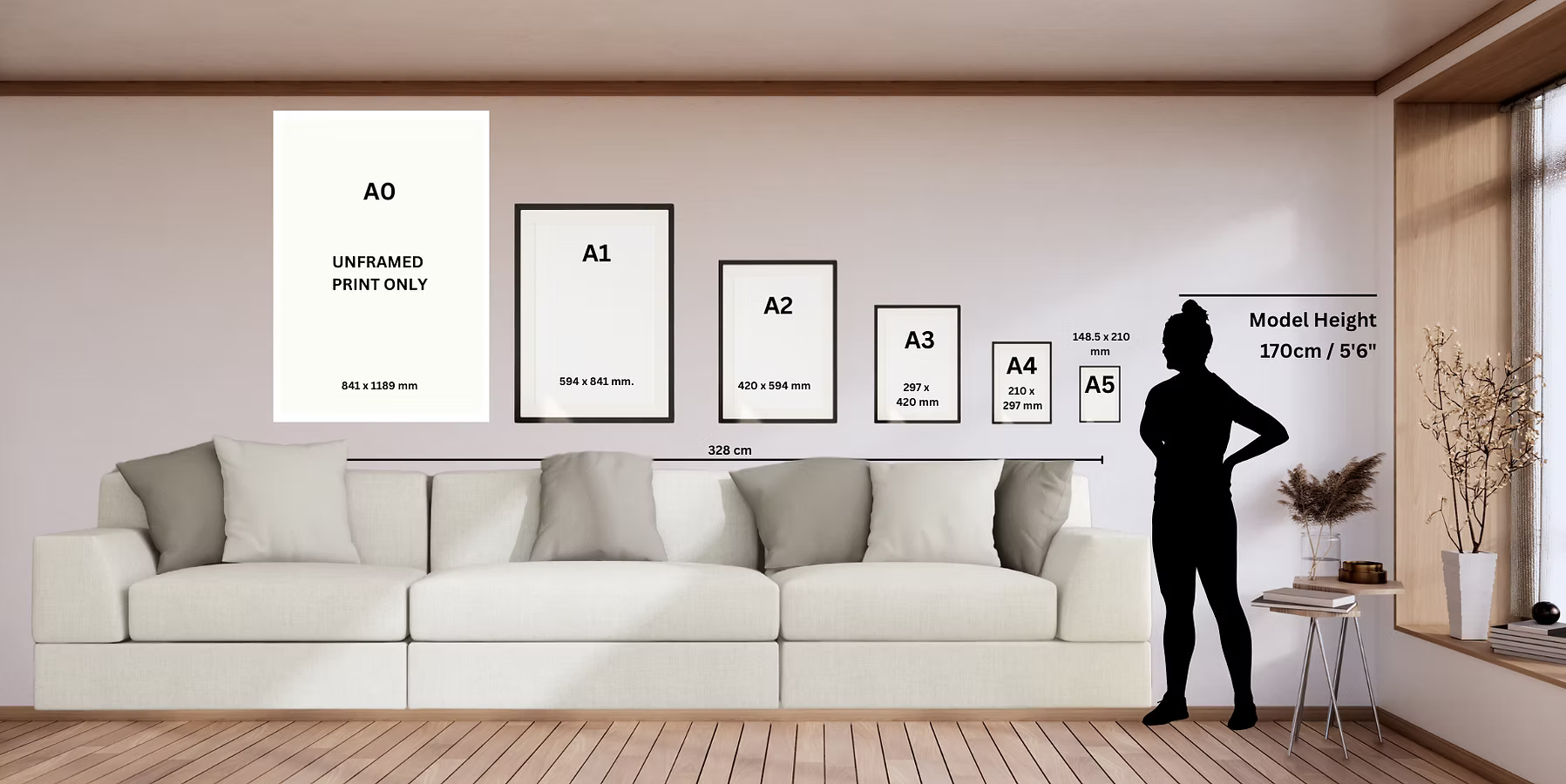 Our larger artworks (A2, A1, and A0) are printed on smooth 170gsm matte paper with a clean, non-reflective finish.